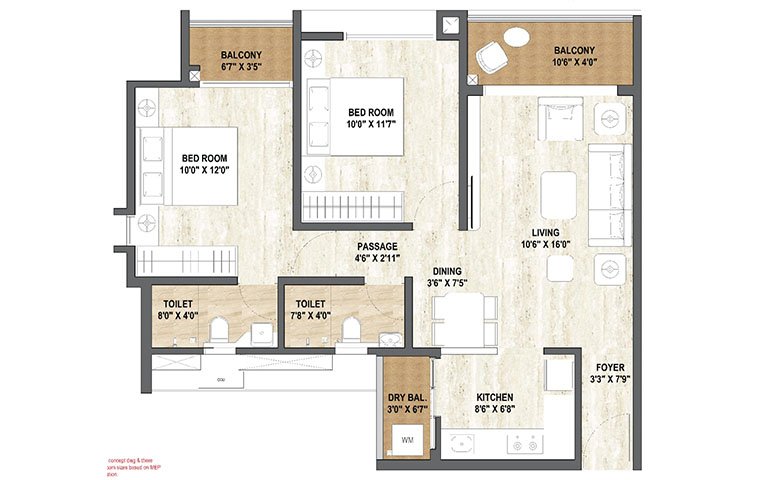 | 2 BHK (Duplex) | 1010 sq. ft | |
